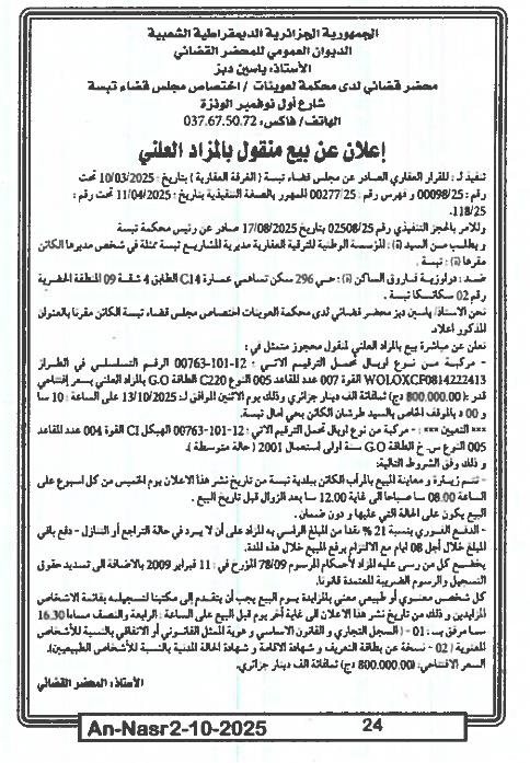 Il sera procédé à la vente au plus offrant et dernier enchérisseur le :