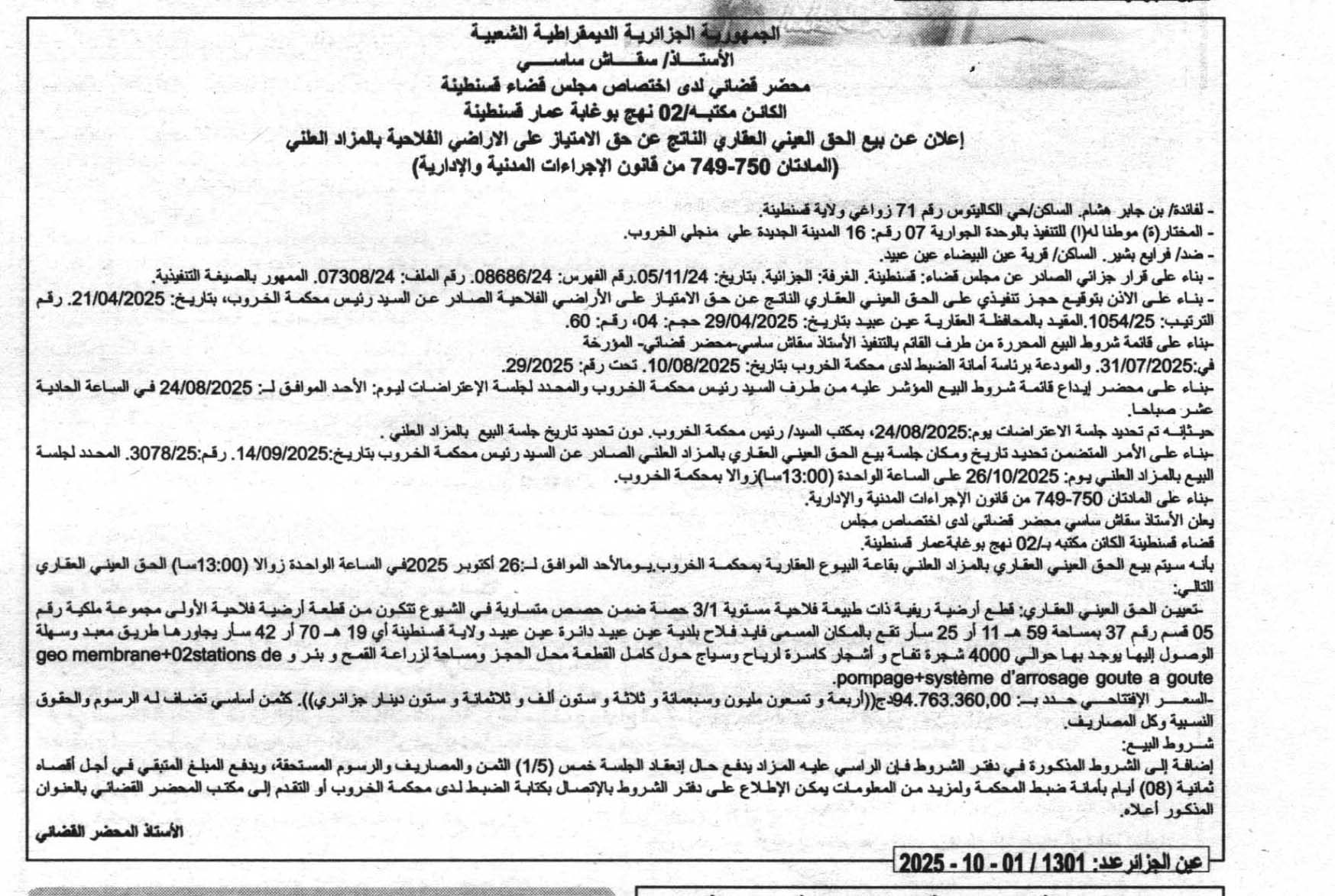 Il sera procédé à la vente au plus offrant et dernier enchérisseur le :