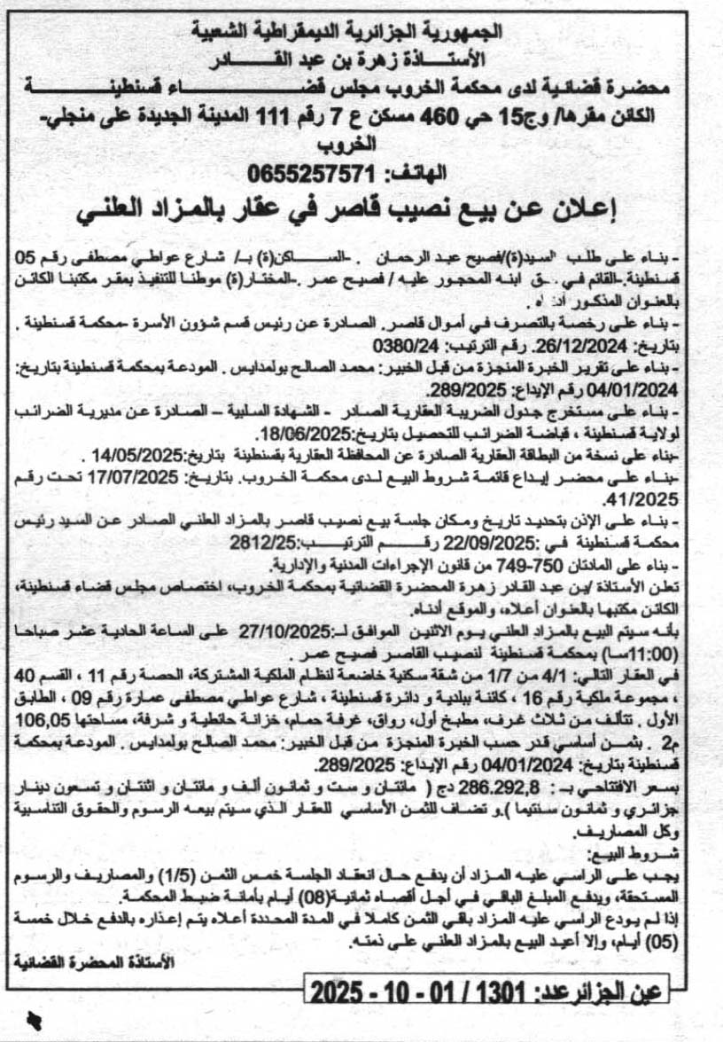 Il sera procédé à la vente au plus offrant et dernier enchérisseur le :