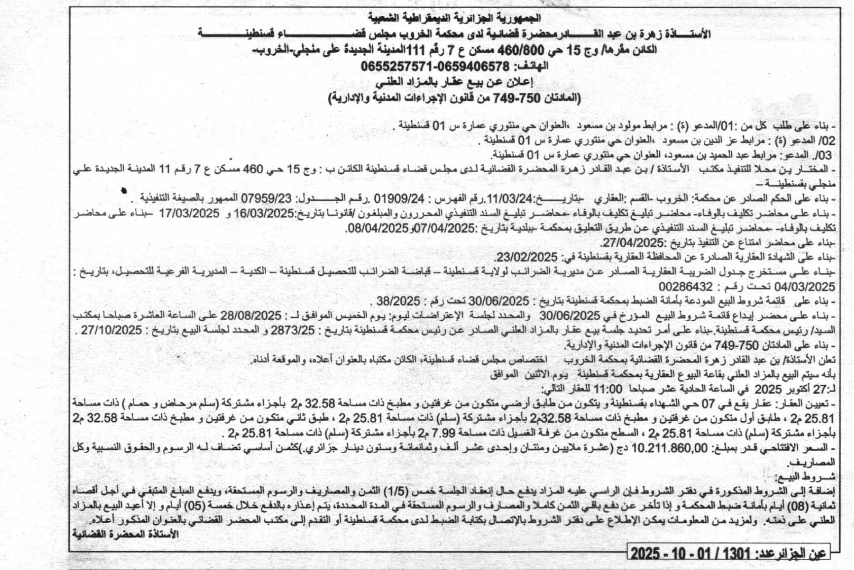 Il sera procédé à la vente au plus offrant et dernier enchérisseur le :