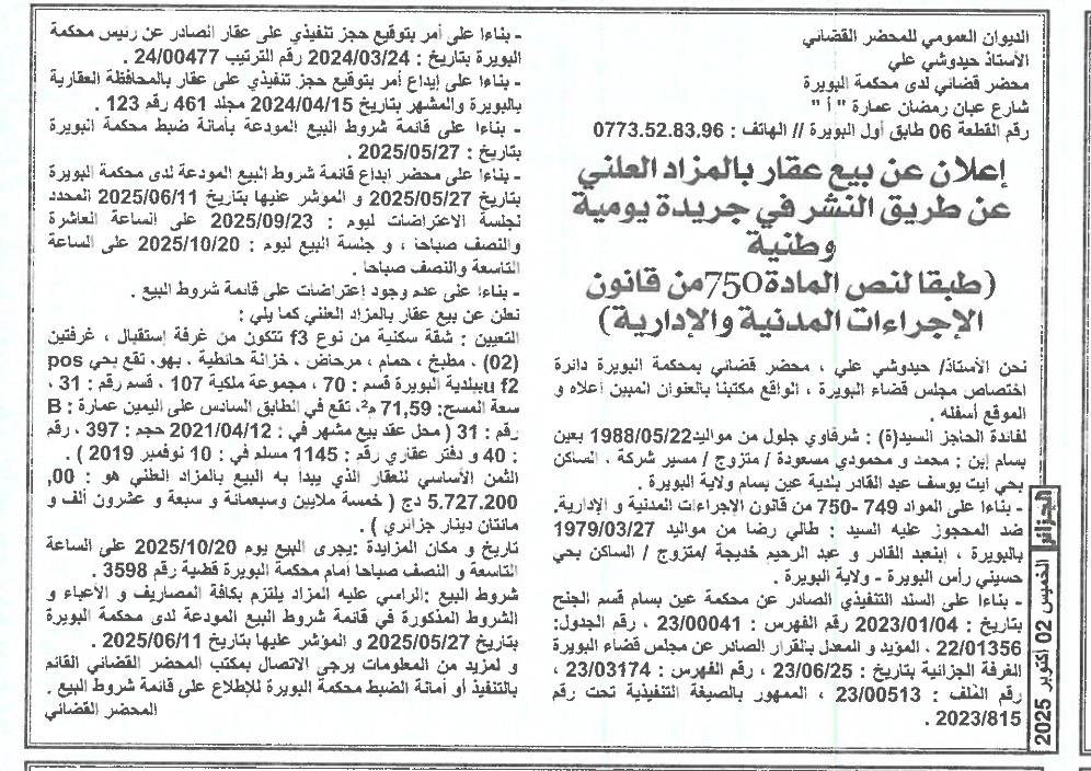Il sera procédé à la vente au plus offrant et dernier enchérisseur le :