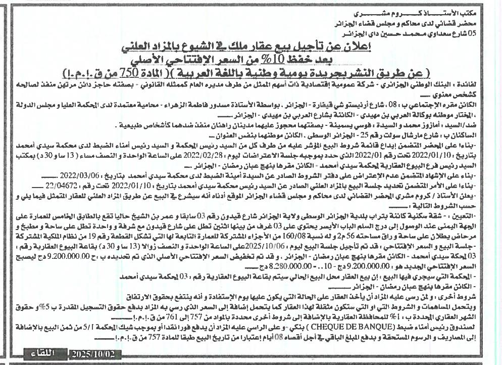 Il sera procédé à la vente au plus offrant et dernier enchérisseur le :