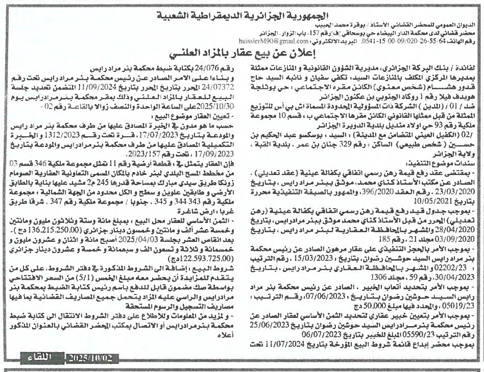 Il sera procédé à la vente au plus offrant et dernier enchérisseur le :