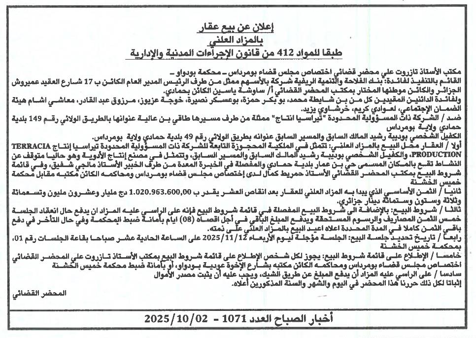 | Paru dans le journal : اخبار الصباح | |