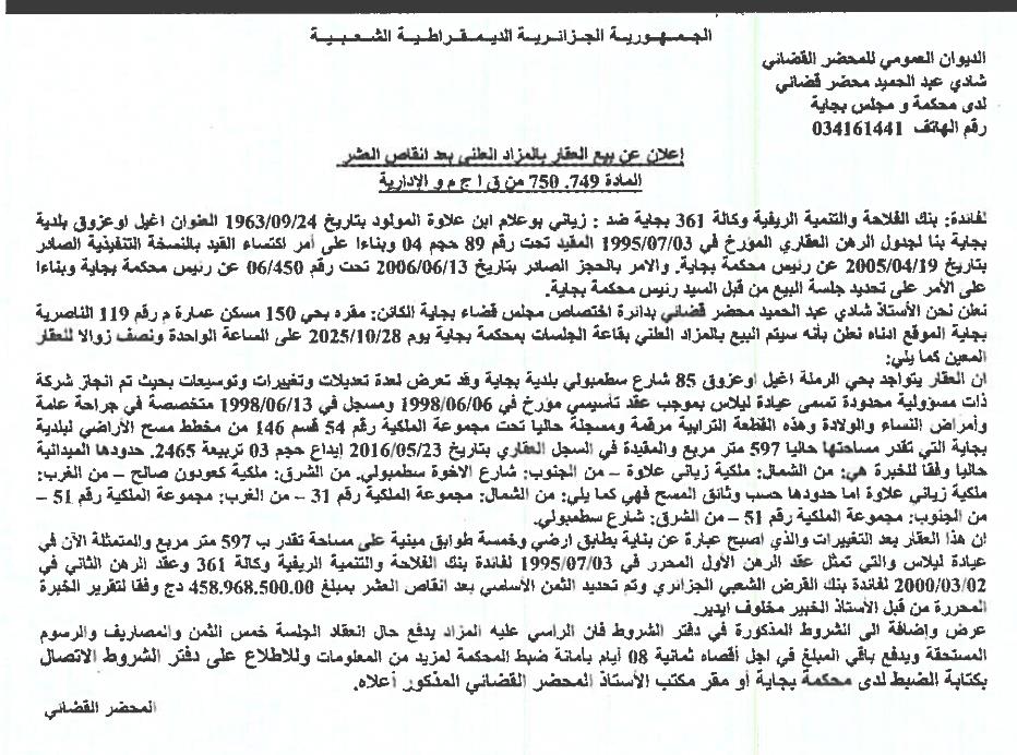Il sera procédé à la vente au plus offrant et dernier enchérisseur le :