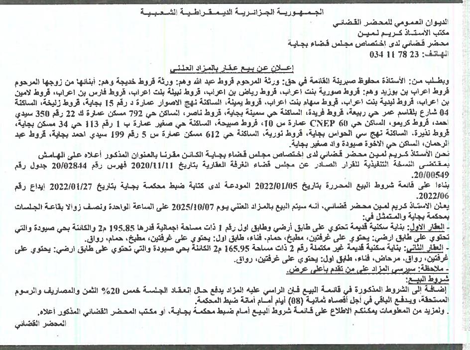 Il sera procédé à la vente au plus offrant et dernier enchérisseur le :