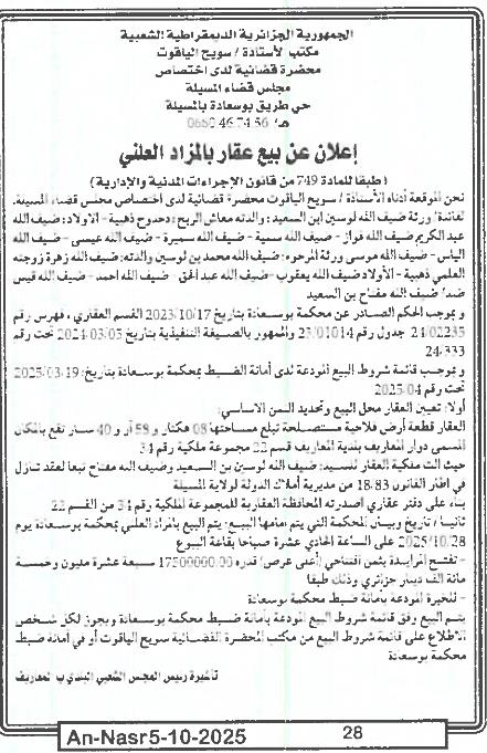 Il sera procédé à la vente au plus offrant et dernier enchérisseur le :
