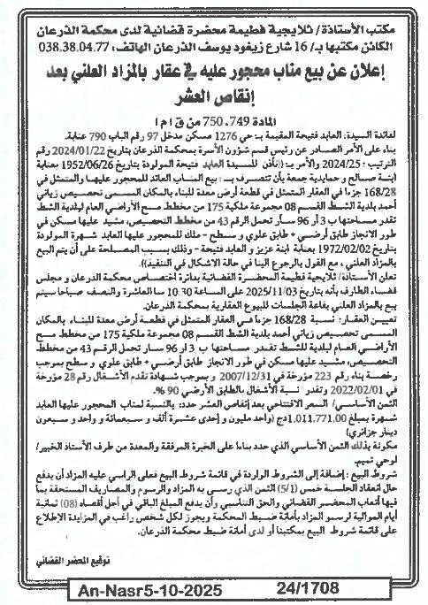 Il sera procédé à la vente au plus offrant et dernier enchérisseur le :