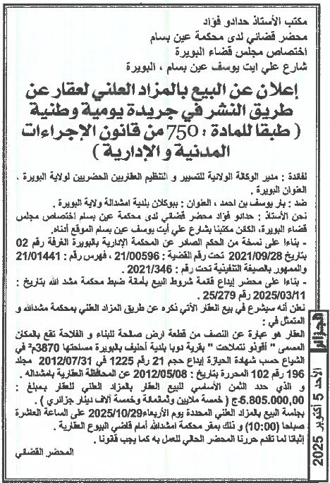 | Paru dans le journal : الجزائر | |