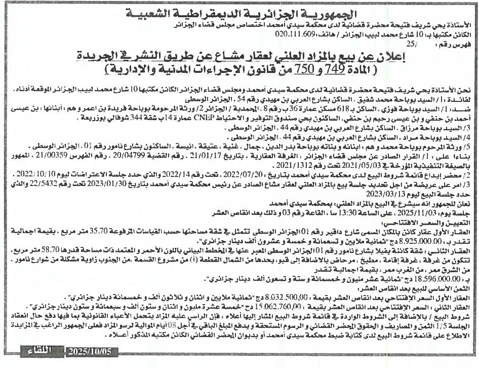 Il sera procédé à la vente au plus offrant et dernier enchérisseur le :