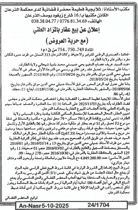 Il sera procédé à la vente au plus offrant et dernier enchérisseur le :