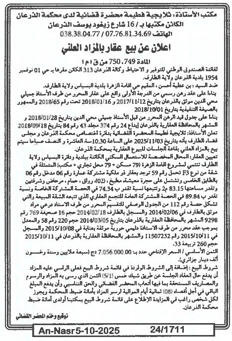 Il sera procédé à la vente au plus offrant et dernier enchérisseur le : 03/11/2025';