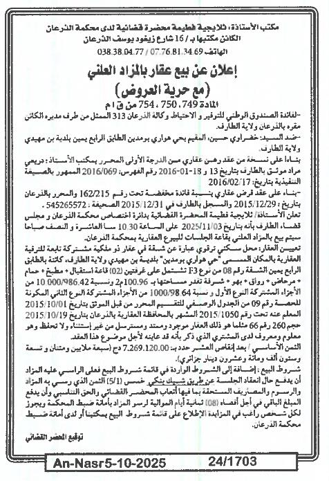 Il sera procédé à la vente au plus offrant et dernier enchérisseur le : 03/11/2025';