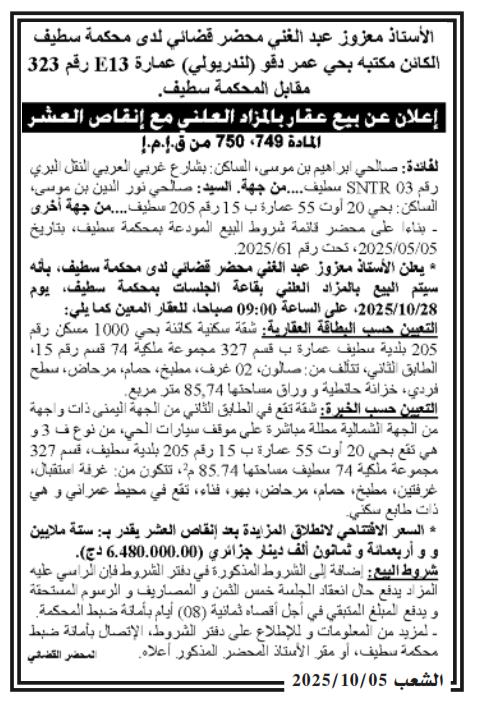 Il sera procédé à la vente au plus offrant et dernier enchérisseur le :