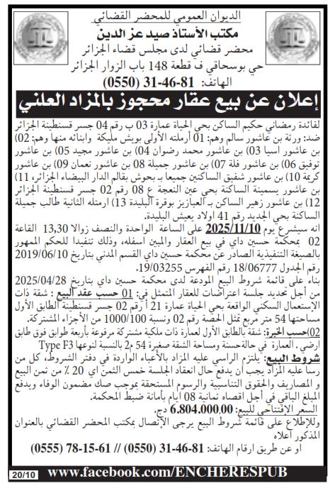 Il sera procédé à la vente au plus offrant et dernier enchérisseur le :