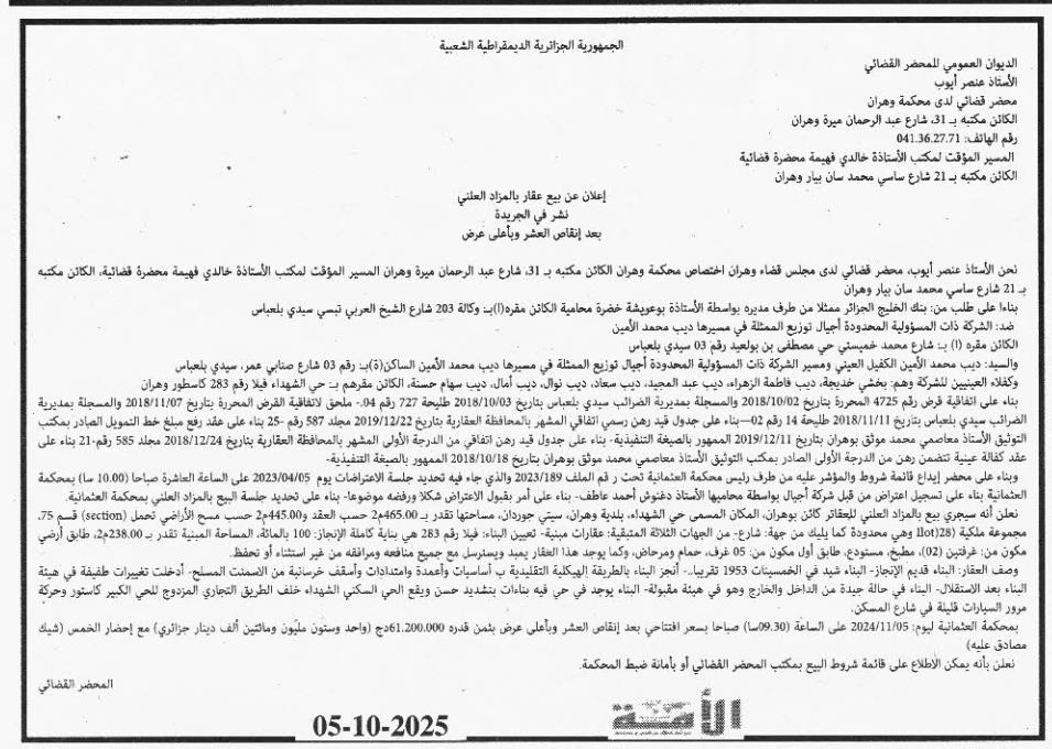 Il sera procédé à la vente au plus offrant et dernier enchérisseur le :