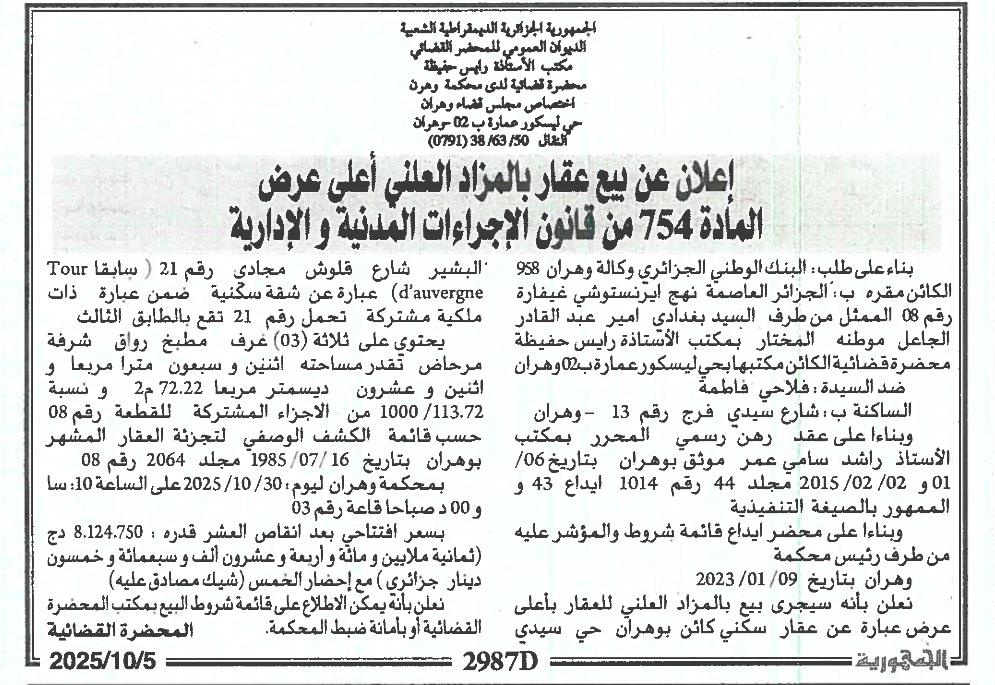 Il sera procédé à la vente au plus offrant et dernier enchérisseur le :