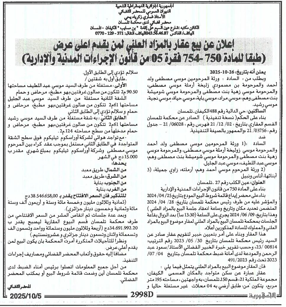 Il sera procédé à la vente au plus offrant et dernier enchérisseur le :