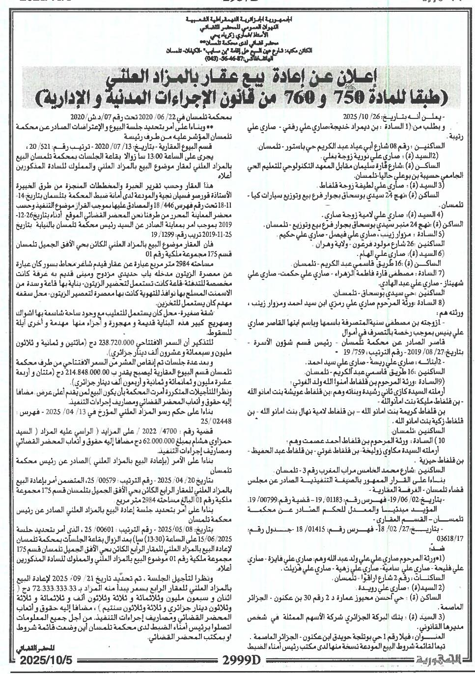 Il sera procédé à la vente au plus offrant et dernier enchérisseur le : 26/10/2025';