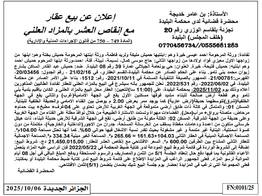 | Paru dans le journal : الجزائر الجديدة | |