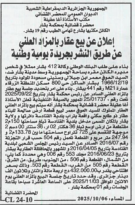 Il sera procédé à la vente au plus offrant et dernier enchérisseur le :