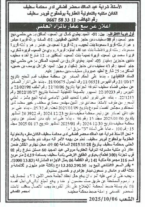 Il sera procédé à la vente au plus offrant et dernier enchérisseur le :