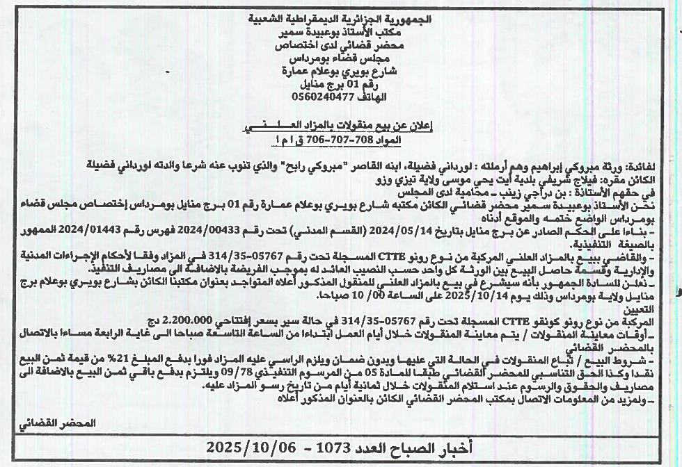 | Paru dans le journal : اخبار الصباح | |