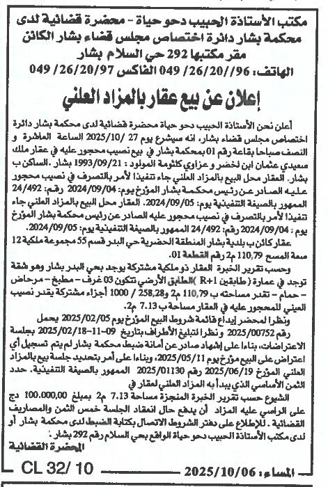 Il sera procédé à la vente au plus offrant et dernier enchérisseur le :