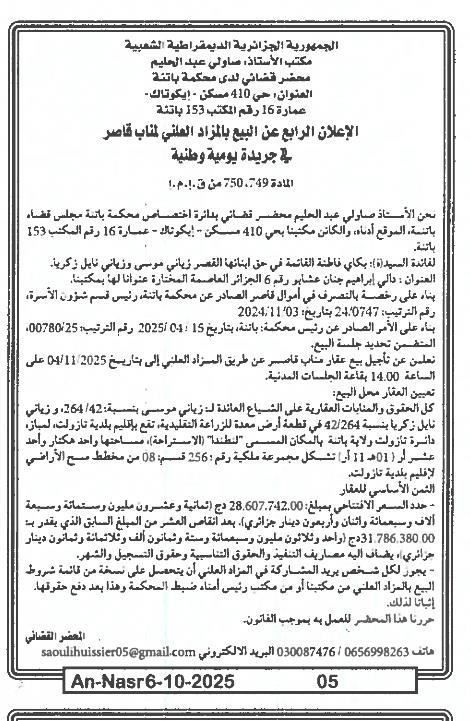 | Paru dans le journal : النصر | |