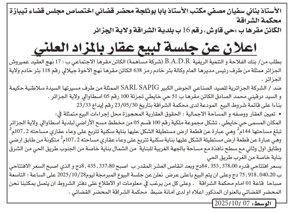 Il sera procédé à la vente au plus offrant et dernier enchérisseur le :