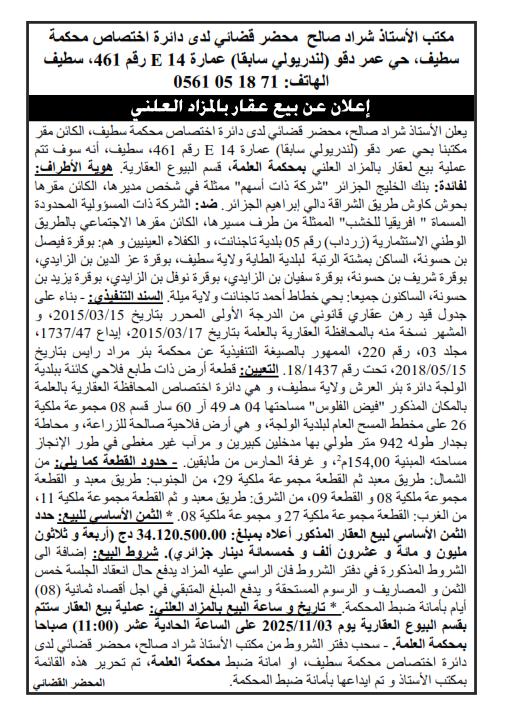 Il sera procédé à la vente au plus offrant et dernier enchérisseur le :