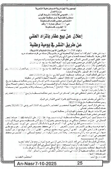 Il sera procédé à la vente au plus offrant et dernier enchérisseur le :
