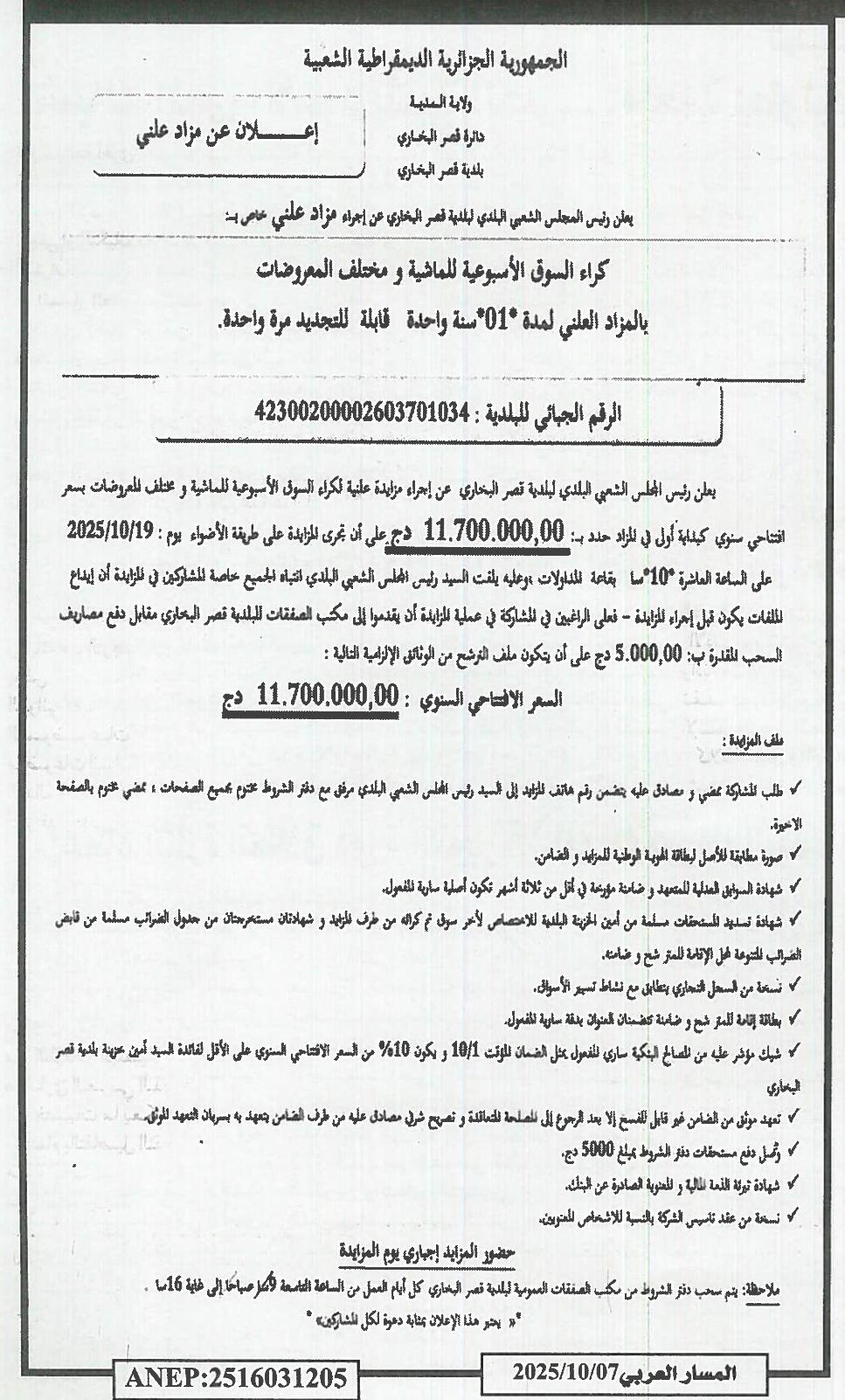 | (*) LA DATE EST DONNÉE À TITRE INDICATIF, VEUILLEZ LA VÉRIFIER LORS DU RETRAIT DU CAHIER DES CHARGES OU AUPRÈS DE L\'ÉMETTEUR | |