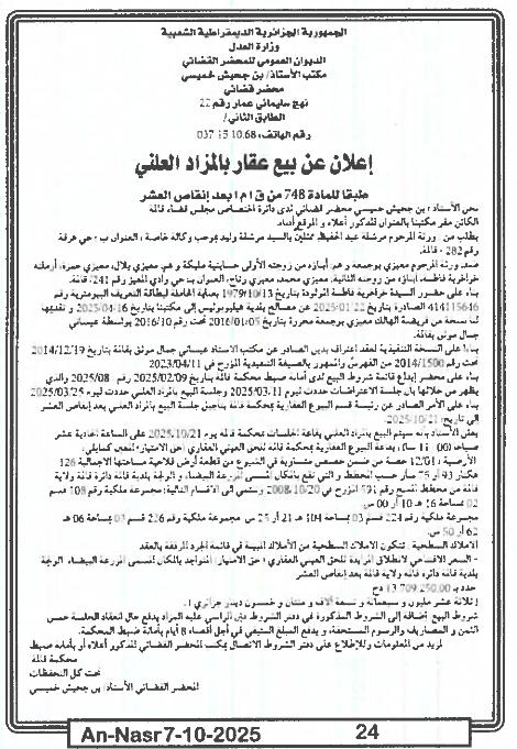 Il sera procédé à la vente au plus offrant et dernier enchérisseur le :