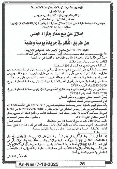 Il sera procédé à la vente au plus offrant et dernier enchérisseur le :