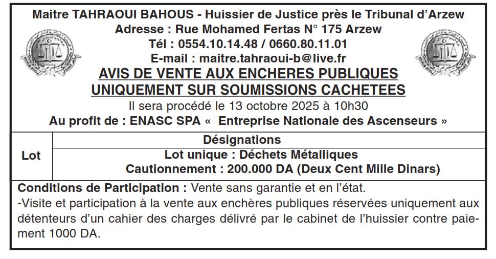 Il sera procédé à la vente au plus offrant et dernier enchérisseur le :