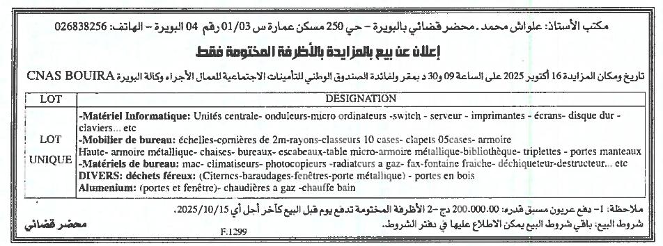 Il sera procédé à la vente au plus offrant et dernier enchérisseur le :