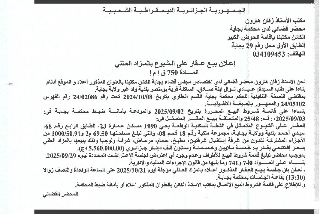 | Objet: Vente d'un immobilier | |