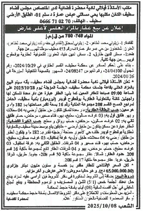 Il sera procédé à la vente au plus offrant et dernier enchérisseur le :