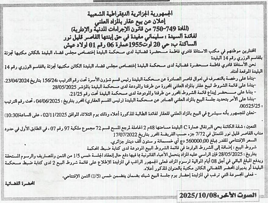 Il sera procédé à la vente au plus offrant et dernier enchérisseur le :