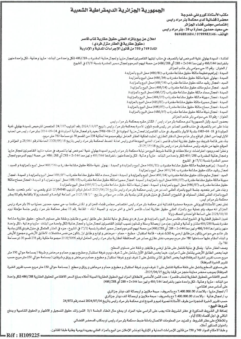 Il sera procédé à la vente au plus offrant et dernier enchérisseur le :