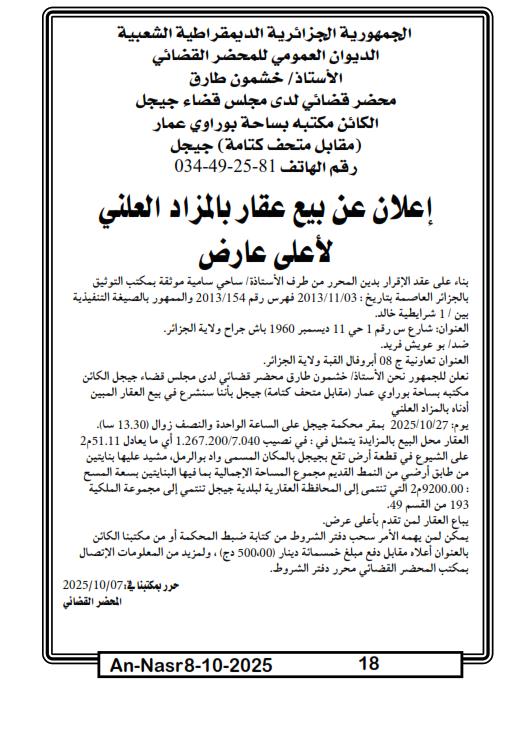 Il sera procédé à la vente au plus offrant et dernier enchérisseur le :