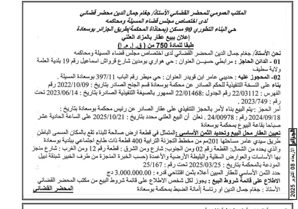Il sera procédé à la vente au plus offrant et dernier enchérisseur le :