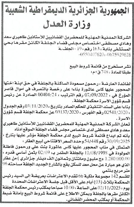 Il sera procédé à la vente au plus offrant et dernier enchérisseur le :