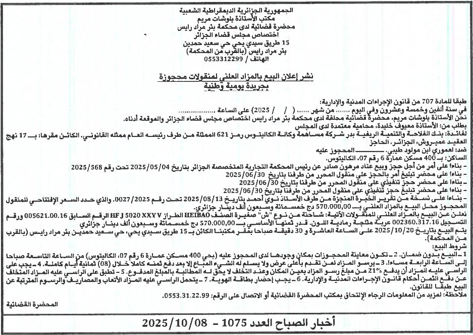 Il sera procédé à la vente au plus offrant et dernier enchérisseur le :