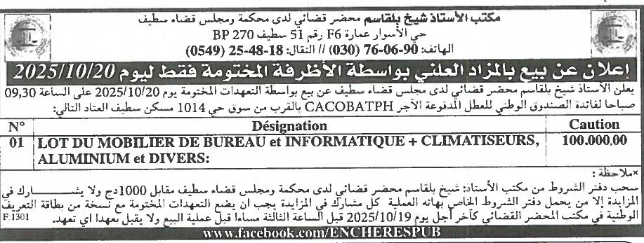 | Objet: Vente lot du mobilier de bureau et informatique + climatiseurs, aluminium et divers | |