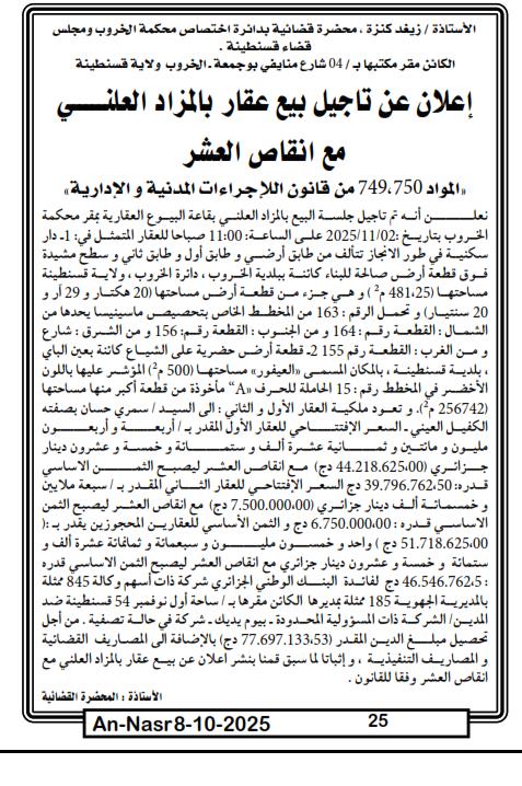 Il sera procédé à la vente au plus offrant et dernier enchérisseur le :