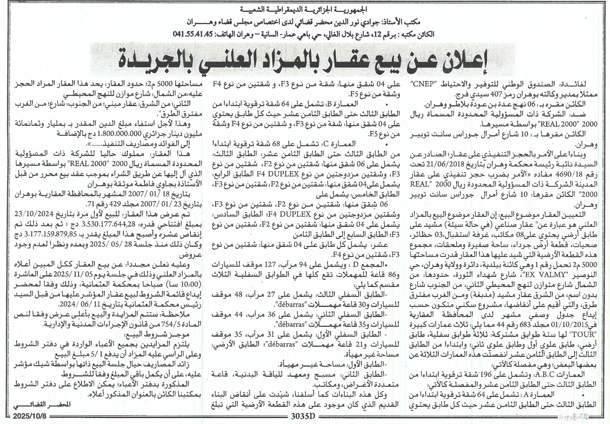 Il sera procédé à la vente au plus offrant et dernier enchérisseur le :