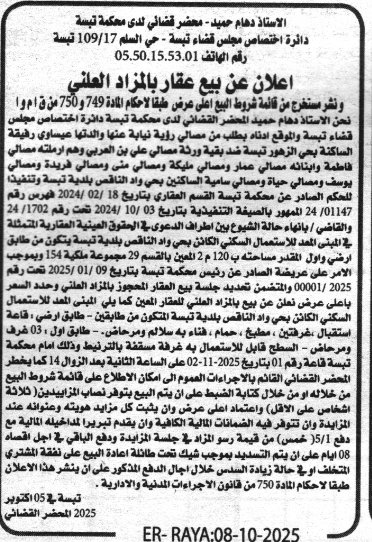 Il sera procédé à la vente au plus offrant et dernier enchérisseur le :