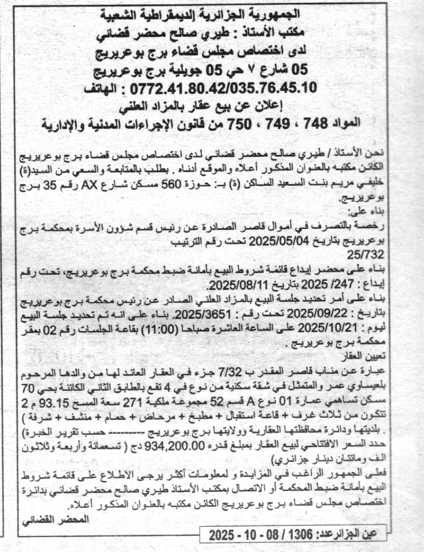Il sera procédé à la vente au plus offrant et dernier enchérisseur le :